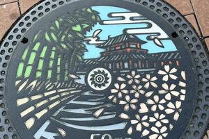 デザインマンホール(No.35)~向日市政50周年 『阪急東向日駅前ロータリー』 |