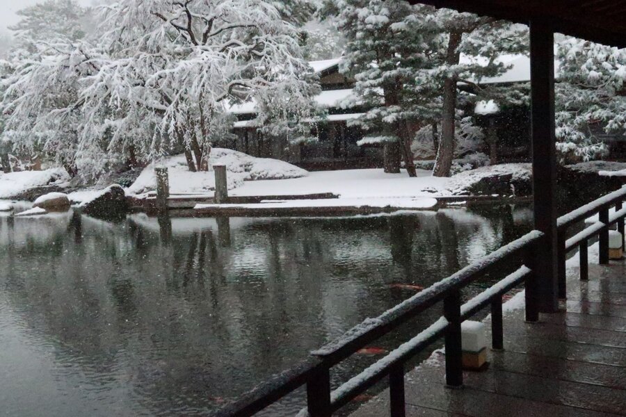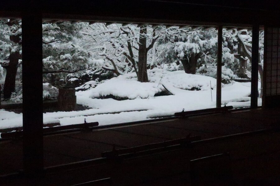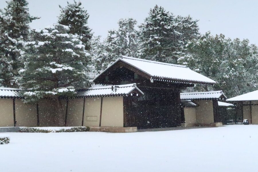 京都市内の中心部では珍しい大雪の日。降り積もる京都御苑の雪を踏みしめて京都迎賓館にたどり着いた。滅多にお眼にかかれない庭などの雪景色は室内の装飾とともに素晴らしかった。この後、金閣寺にも足を伸ばしたのだが、山門の受け付から西大路通まで延々と続く列。一旦は加わったが、途中であきらめた。