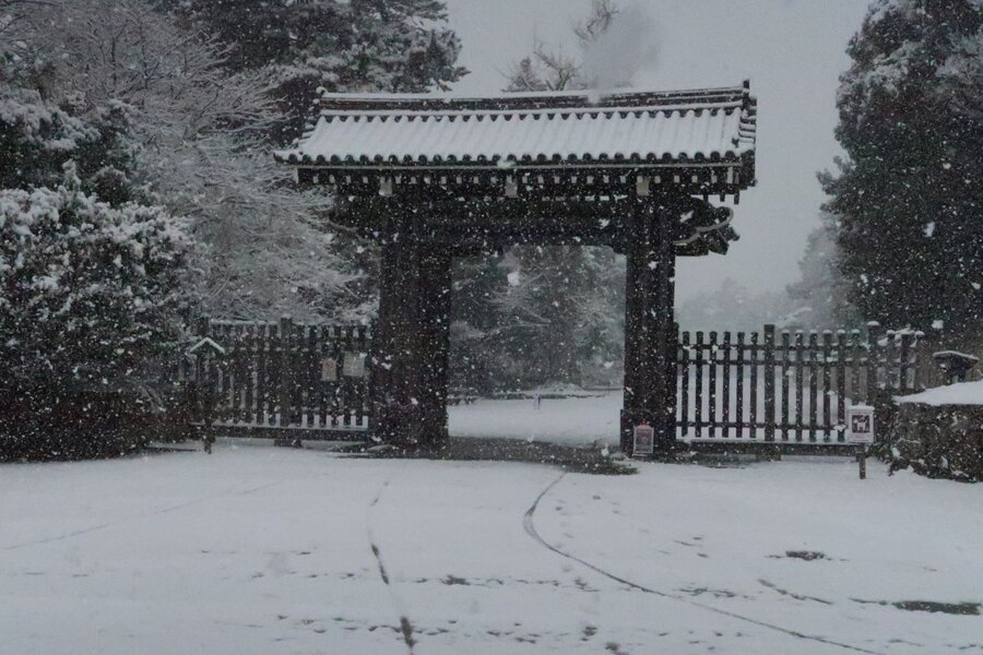 凍える寒さにも毅然とした門。 この日は流石に仙洞御所の参観は、当日申込でもフリーの状態だった。