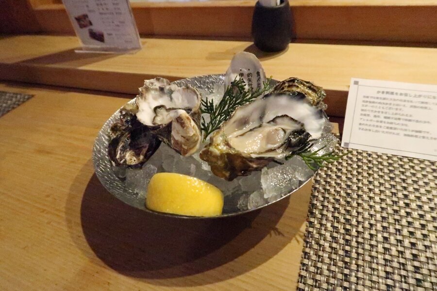 フォト俳句(907 ) 『生牡蠣の精進落としお猪口酒』